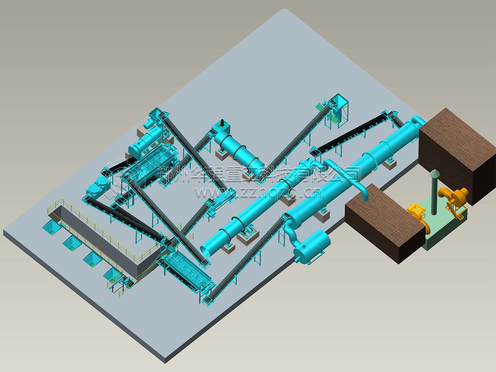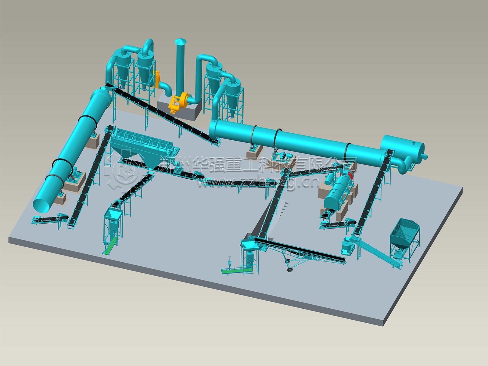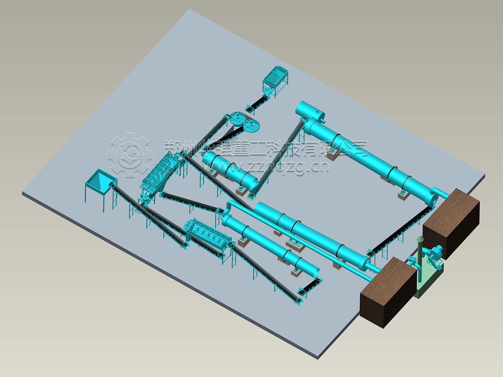 鄭州華強重工科技有限公司 ,自主開發和生產出適合有機肥和生物有機肥生產使用的發酵設備、烘干設備、造粒設備、分篩系統、配料系統等全套肥料設備。我公司具有雄厚的技術力量、高素質的員工隊 伍和CAD 設計中心,能夠為肥料企業提供廠房設計、工藝改進、設備制作、安裝、調試,配方等一系列的全方位服務,產品覆蓋 各地,部分產品已配套出口。公司主營產品:地面行走式翻堆機、槽式翻堆機、粉碎機、攪拌機、造粒機、烘干機、冷卻機、篩分機、包裝機、除塵脫硫設備等,可根據客戶的要求設計1萬-50萬噸的有機肥生產流水線及車間廠房設計、提供成套有機肥設備、BB肥成套設備、有機無機肥設備、高中低塔肥設備、轉鼓蒸汽復混(合)肥設備、脲甲醛肥設備、氨酸肥設備、氨化肥設備、全融溶噴漿肥設備、尿基噴漿肥設備、擠壓肥設備及雞糞等高濕物料烘干發酵設備。